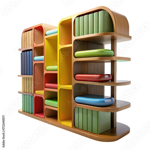 bookshelf, shelf, book, colourful, wooden, design, furniture, interior, storage, reading, education, library, home, office, bookcase, style, modern, arrangement, cognition, stack, collection, display, wood, structure, cube, decorative, bright, organised, neatly, object, nobody, isolated, background, study, resource, literature, learn, textbook, information, learning, shelf, row, architecture, container, interior design