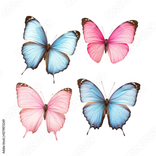 butterfly, insect, colourful, nature, animal, beauty, vibrant, delicate, wing, pink, blue, fauna, illustration, flying, wildlife, artistic, design, decoration, fantasy, macro, transparent, species, blooming, garden, summer, ecosystem, closeup, soft, texture, light, aethereal, environment, bright, elegant, tropical, stunning, art, pattern, detailed, natural, effortless, serenity, unique, lovely, aesthetic