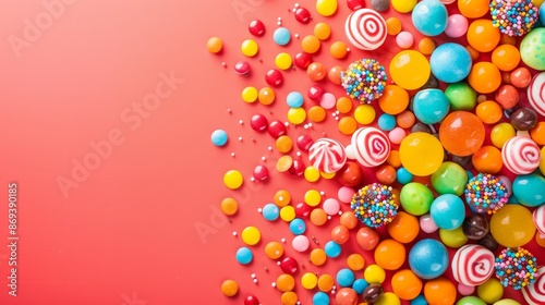 Colorful candies on a red background