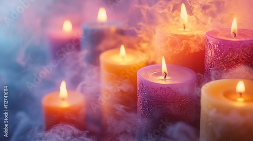 candle, candle, light, flames, fire, smoke, colourful, colours, vibrant, purple, pink, orange, yellow, blue, teal, pastel, mystical, magical, romantic, serene, peaceful, relaxing, calm, quiet, tranquil, warm, cosy, comfort, hope, faith, spirituality, meditation, infuriated, aroma, fragrance, glow, burning, wax, home, decor, decoration, ambience, atmosphere, background, texture, design, illustration, still life, art