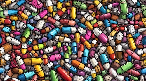 pill, capsule, medicine, pharmacy, health care, drug, pharmaceutical, tablet, medication, treatment, colourful, assorted, variety, health, wellness, vitamin, supplement, bright, vibrant, many-coloured, pharmaceutical, medicals, illustration, graphic, design, pattern, background, texture, abstract, art, artwork, visual, image, digital, drawing
