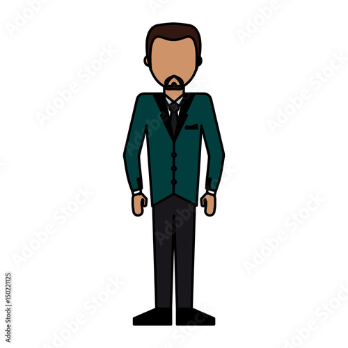 colorful caricature image faceless man formal suit and beard vector illustration