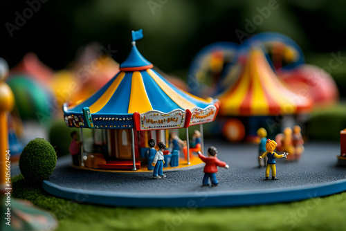 carousel, amusement, park, miniature, colourful, spinning, joyful, sunny, attraction, entertainment, visitor, childhood, ride, fun, happiness, model, carnival, scene, celebration, excitement, play, festival, toy, landscape, memory, active, whimsical, charme, delight, fantasy, innocence, dream, summer, recreation, magic, enjoyment, community, gathering, action
