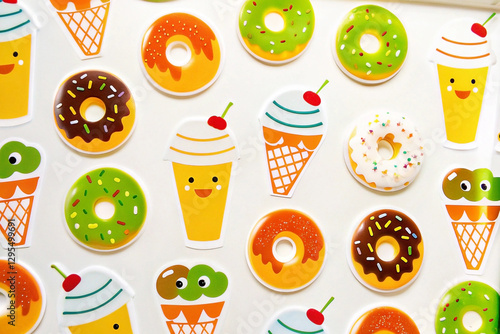 dessert, sweet, donut, ice cream, cone, sprinkle, sugar, candy, treat, sweet, food, deliciously, tasty, delicious, cute, happy, cartoon, illustration, pattern, background, texture, colourful, vibrant, bright, cheerful, fun, playful, summer, spring, children, children, joy, graphic, design, art, image, picture, wallpaper, sticker, whimsical, decoration, element, vector