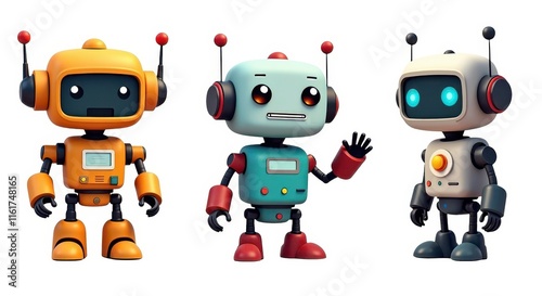 Colorful Cartoon Robot Collection with Technology Theme, Stock Illustration for Educational and Creative Projects