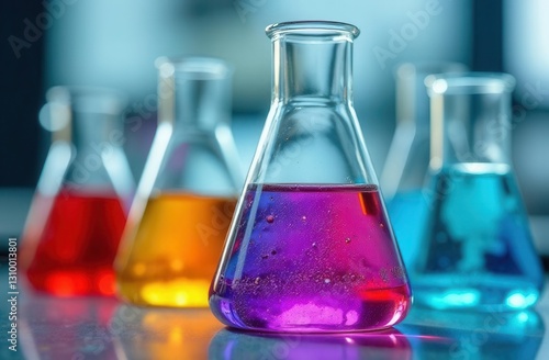 Colorful chemical reactions in laboratory beakers for scientific research and education