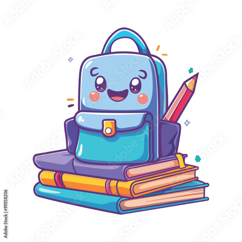 colorful children school backpack and schoolbag with books , Hand drawn graphics bags vector illustration isolated on white background