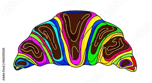 croissant, chocolate, bakery, pastry, food, delicious, breakfast, art, colourful, illustration, bread, sweet, dessert, treat, baked, design, drawing, pattern, vibrant, bright, yellow, blue, green, red, purple, pink, brown, shape, isolated, white, background, graphic, artistic, line, curve, style