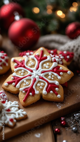 christmas, cookie, snowflake, icing, festive, holiday, red, white, christmas, dessert, decoration, baking, celebration, treat, sugar, winter, homemade, delicious, party, festive season, seasonal, joy, cheerful, epicure, traditional, family, gathering, table, cosy, warmth, holiday spirit, culinary, creativity, colourful, hand-made, winter landscape, party food
