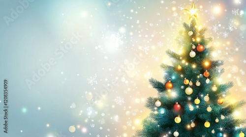 Colorful Christmas Tree Background with Festival Lights in Wide Angle View