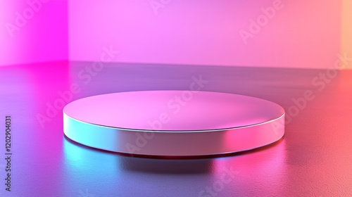 Colorful Circular Platform with Glowing Edges on Abstract Background in Neon Lighting for Product Display or Art Presentation