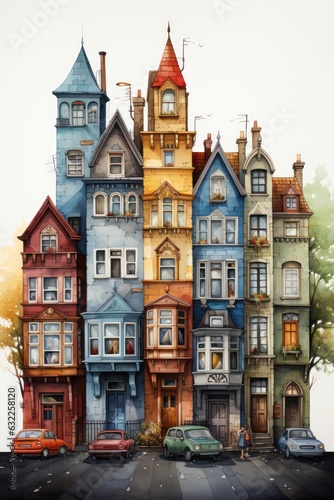 Colorful Clipart of Quirky English Countryside Houses AI Generated
