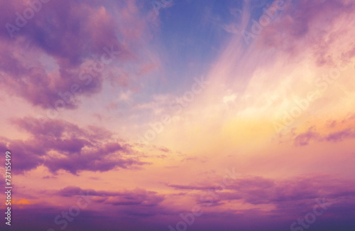 Colorful cloudy sky at sunset. Gradient color. Sky texture. Abstract nature background