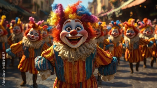 Colorful Clowns Parade in an Italian Carnival Celebration Scene