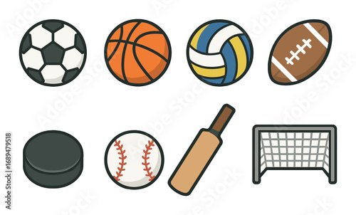 sport, equipment, icon, collection, colourful, soccer, basketball, volleyball, football, hockey, baseball, cricket, goal, ball, athletic, play, game, diverse, recreational, activity, assorted, graphic, illustration, flat, symbol, hobby, fun, recreation, energetic, leisure, team, match, visual, competition, exercise, pastime, graphic design, edit, creative, design, outdoors, emblem, versatile, dynamic