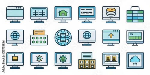 Colorful Computer Monitor Icons for Website and Mobile Application Design