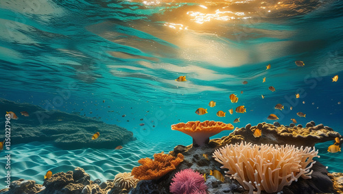 Colorful Coral Reef in Transparent Shallow Waters – Tropical Underwater Paradise