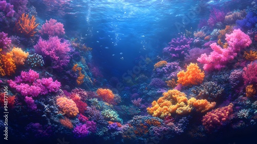 Colorful coral reef teeming with a variety of marine species, showcasing the beauty and diversity of underwater ecosystems in a thriving, lively habitat