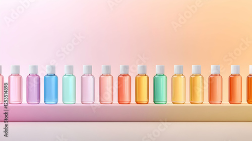 bottle, colourful, cosmetic, beauty, product, gradient, background, row, banner, advertising, skincare, arrangement, colours, hygiene, container, elegance, merchandise, design, package, plastic, style, nobody, display, clean, mock, space, pastel, product, spectrum, well-being, health care, liquid, shiny, collection, assortment, label, isolated, toiletry, modern, studio, shelf, composition, presentation, serum, essential, blank