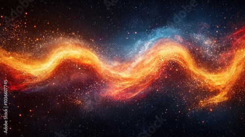 Colorful cosmic wave of fire and ice in a mystical space environment filled with stars and vibrant colors