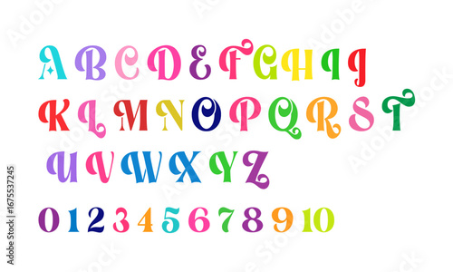Colorful Crayon Drawn Alphabet and Numbers Vector Illustration – Hand Drawn Textured Letters, Digits, and Symbols Set, easily editable and scalable.