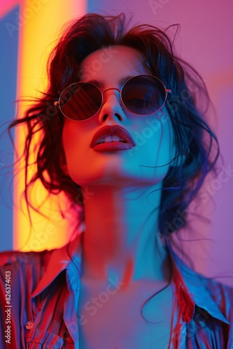 Colorful Dazzle Background: Fashionable Female Model's Portrait, Vibrant and Glamorou