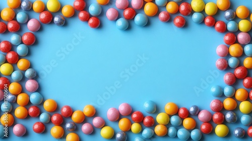 Colorful Decorative Candy Balls on a Bright Blue Background Creating a Fun and Playful Atmosphere for Celebrations and Festive Occasions in Vibrant Hues