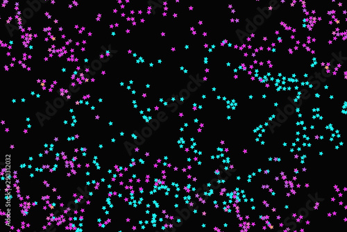 Colorful decorative stars on black background..Abstract backdrop. Festive concept.