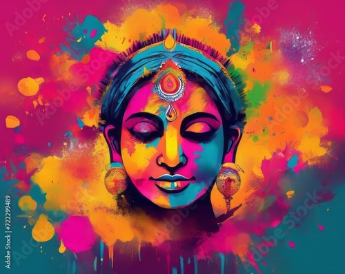 Colorful depiction of Holi, showcasing the festivity through faces adorned with vibrant colors during the Indian Holi festival.