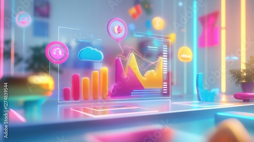 Colorful Digital Analytics Dashboard in Modern Workspace Setting
