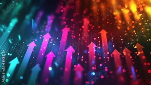 Colorful Digital Arrows Pointing Upwards, Symbolizing Growth