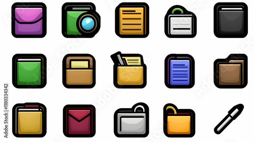folder, icon, document, file, book, envelope, digital, graphic, design, icon, collection, interface, software, office, business, datum, information, technology, file, organisation, management, web, presentation, storage, paper, communication, vector, illustration, flat, modern, simple, creative, clean, minimalist, outline, set