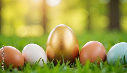 easter, egg, grass, colourful, gold, spring, decoration, holiday, nature, festive, creativity, celebration, white, brown, blue, green, seasonal, vibrant, painted, eggshell, traditional, bokeh, background, bright, cheerful, joy, symbol, fertility, renewal, childhood, event, morning, sunshine, family, gathering, fun, artistic, design, natural, picnic, tradition, playful, happy, holiday season, springtime