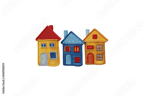 Colorful, embroidered houses on a transparent background. representing a playful and artistic community or home concept.