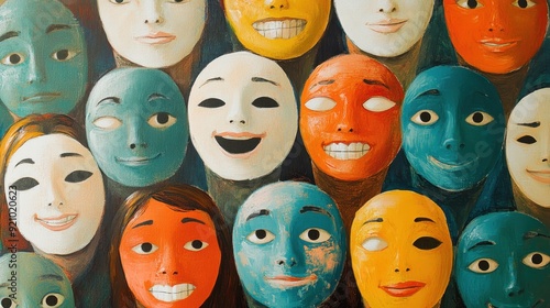 mask, face, painting, art, expression, colours, emotion, human, portrait, artwork, smile, abstract, design, illustration, creative, digital, texture, canvas, gallery, style, contemporary, modern, exhibition, museum, figurative, fine, piece, artistic, artist, wall, print, fair, colourful, high-coloured, blue, red, yellow, white, orange, brown, green