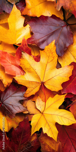 Colorful Fall Maple Leaves Texture with Vibrant Autumn Colors : Generative AI