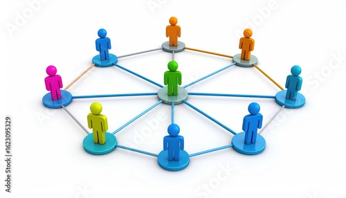 figure, connected, network, communication, teamwork, collaboration, people, colours, design, three-dimensional, illustration, modern, relationship, link, system, interaction, group, central, connection, visual, organisation, shared