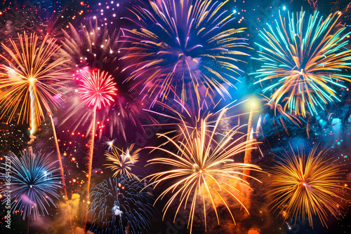 Colorful fireworks display on New Year's Eve