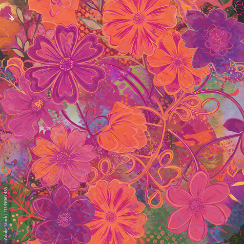 pattern, seamless, flower, floral, wallpaper, vector, decoration, ornament, design, leaf, art, illustration, decor, texture, nature, vintage, textile, spring, retro, summer, paper, ornate, plant, tile