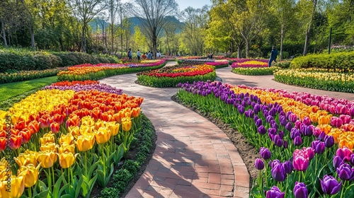 english garden, colorful flowers, garden design, spring flower, horticulture, garden path, nature scene, floral arrangement
