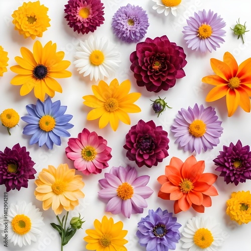 flower, flower, bloom, blossom, bloom, blossom, floral, botany, flower petals, colourful, vibrant, bright, many-coloured, daisy, dahlia, chrysanthemum, aster, orange, yellow, pink, purple, red, white, blue, overhead, topview, spring, summer, nature