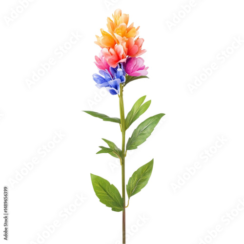 flower, blossom, bloom, flower petals, orange, pink, blue, green, leaf, stem, plant, artificial, colourful, striped, background, vibrant, many-coloured, nature, floral, design, art, decoration, home, decor, image, photo, graphic, illustration, vertical, single, tall, summer, spring, autumn