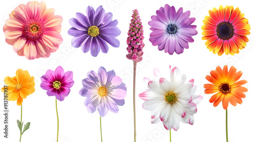 Colorful Flowers Blooming with Transparent Background, Delicate Petals and Vibrant Hues for a Stunning Display
