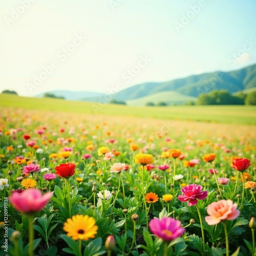 Colorful flowers in a field on a white background, , blossoms, landscape