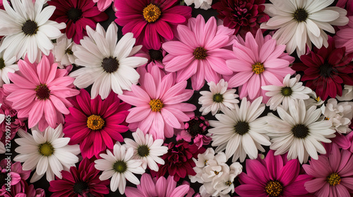 flower, pink, white, floral, daisy, nature, garden, bloom, vibrant, spring, summer, decoration, background, beauty, fresh, colourful, arrangement, seasonal, bright, botanical, flora, blossom, cheerful, aesthetic, closeup, variety, design, texture, natural, soft, romantic, landscape, bouquet, high-coloured, lovely, elegant, artistic, pattern, harmony, joyful, lush, decorative, display
