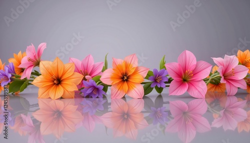 flower, colourful, grey, nature, floral, pink, orange, purple, plant, bloom, garden, display, vibrant, arrangement, spring, beauty, decoration, design, artistic, summer, seasonal, home decor, greeting card, celebration, freshness, elegance, greenery, still life, aesthetic, bouquet, visual, growth, landscape, calmness, harmony, peaceful, bright, softness, botanical, natural beauty, uplifting, serene, ornamentation