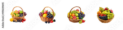 Colorful Fruit Baskets with Assorted Fresh Fruits on White Background