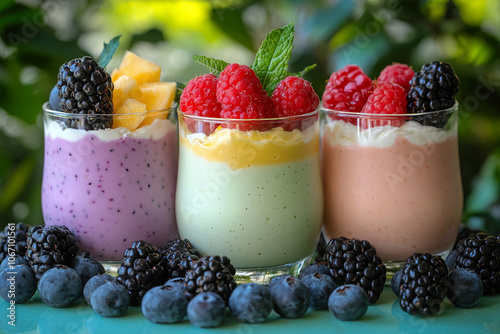 Colorful fruit desserts beautifully arranged on a table outdoors