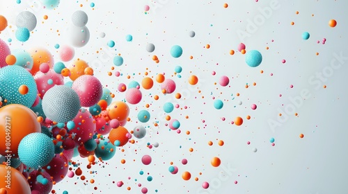 colorful funny balls flying and floating in space with pastel and vivid colors, amazing depth of field