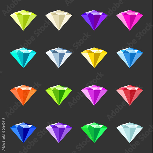Colorful gems set. Jewelry, crystals collection on black. Different gemstones